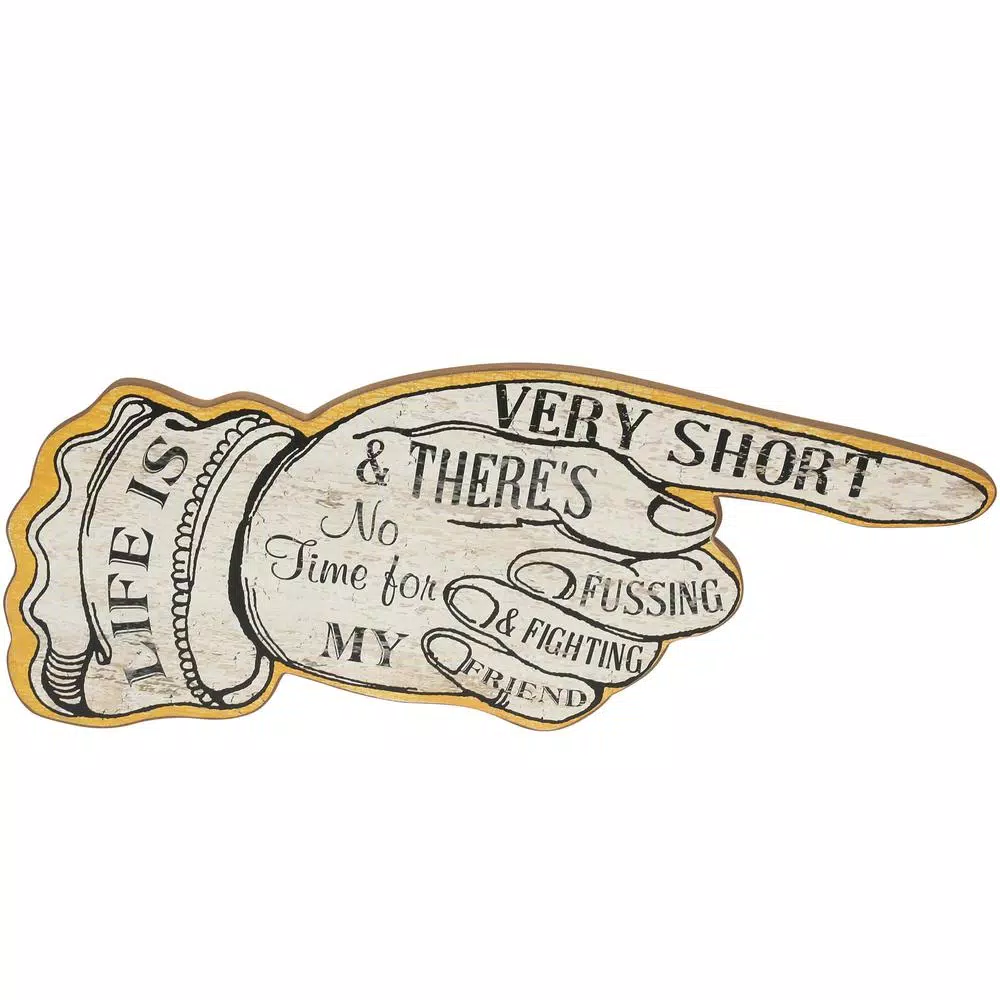 Featuring the words “Life is very short and there’s no time for fussing and fighting, my friend”, this quirky unframed wall art is the ultimate conversation-starting piece of decor. Shaped like a hand and including a distressed finish, this wall art gives off a distinctively vintage vibe. This sign would look perfect hanging in a bar area or on a huge gallery wall of eccentric art.