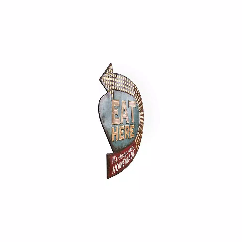 Delight your family members and put a smile on guests’ faces with this wonderfully retro wall decor. Inspired by classic 50s Americana and old diners that used to dot the sides of highways the country over, this charming design showcases a swooping red arrow fitted with yellow faux-lightbulbs around a teal sign displaying the words: “EAT HERE.” Made from tin and distressed for a vintage, antiqued look, this piece showcases a keyhole hanger for easy installation. To establish a farmhouse chic aesthetic in your open concept, eat-in kitchen, mount this sign over a slatted wooded banquette by a brightly-lit window in the corner. Set the table with a galvanized steel pail full of freshly-cut calla lilies as a floral centerpiece for any occasion, then install a repurposed mason jar pendant light overhead to wash the room in a quaint country glow.