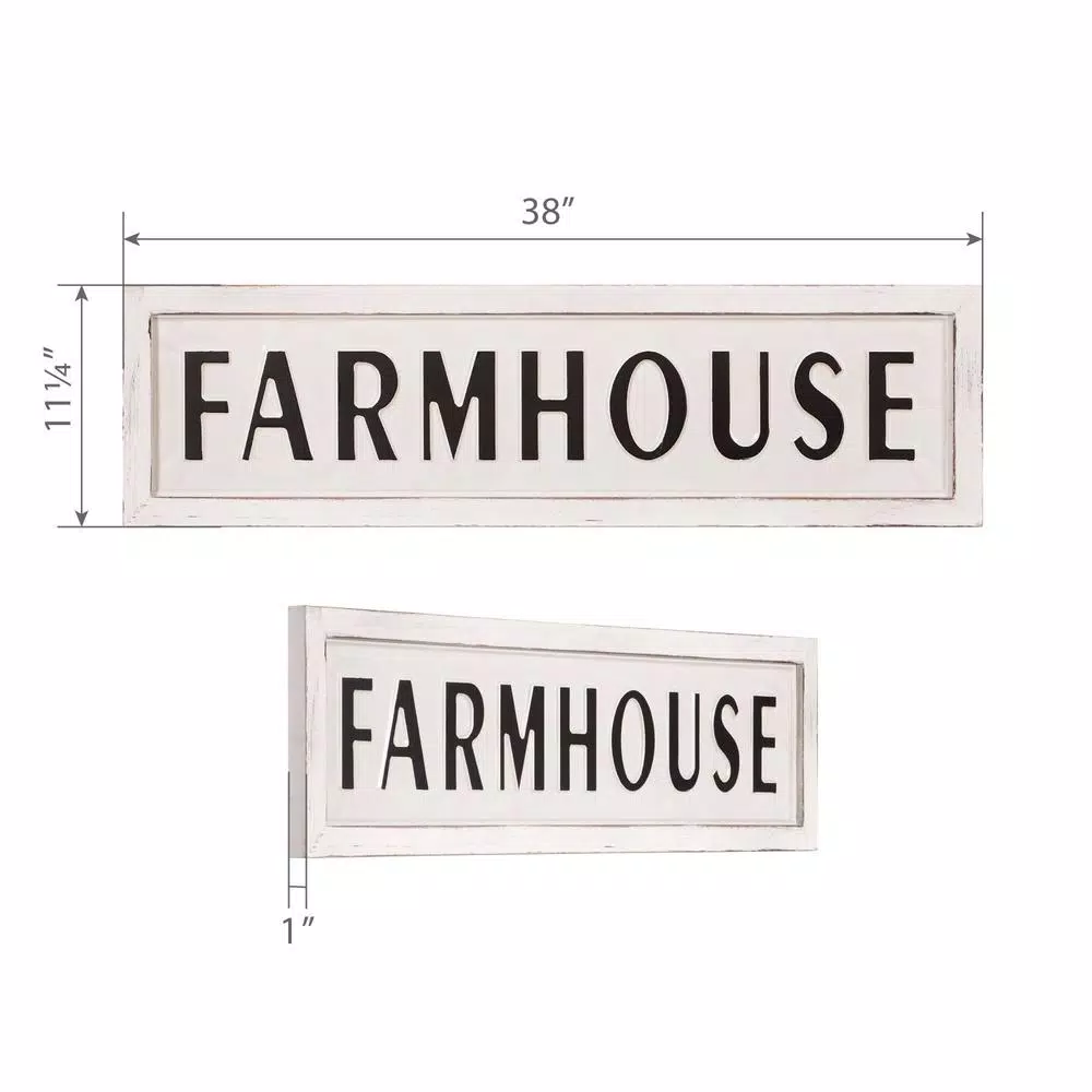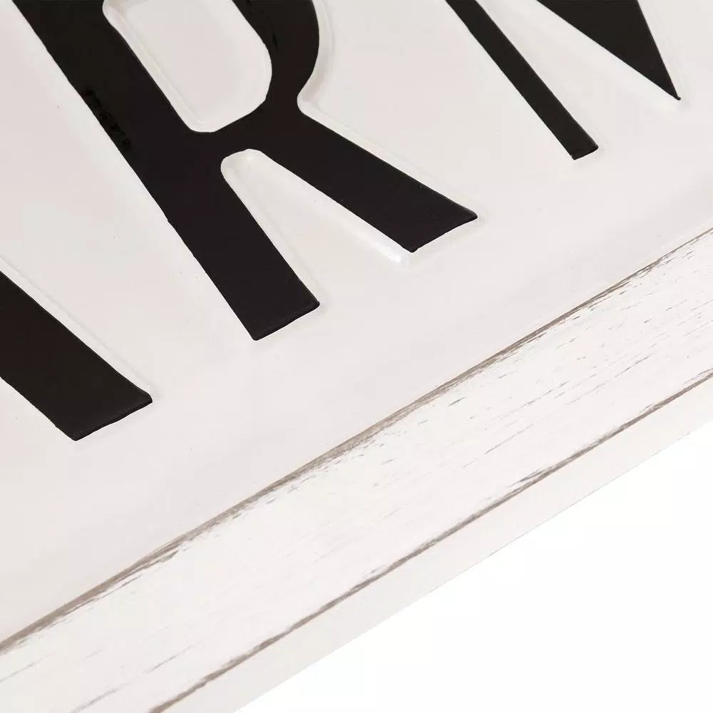 Bring a warm and rustic vintage inspired element into your space with this Rustic Farmhouse Tin Enamel Wall Sign. This enamel coated metal hanging welcome sign is constructed of tin featuring an antique white enamel coating with dimensional embossed black letters and a faux framed edge. This must-have rustic wall decor piece for any farmhouse modern space measures 38 in. wide x 11.25 in. tall. Ships ready-to-hang with easy to use hangers on the back. Hang this vintage inspired cast iron welcome sign in the entryway, living room, dining room or kitchen for a quick and easy style refresh. This graphic typography artwork adds a little country charm and a heart felt message for all of your guests.