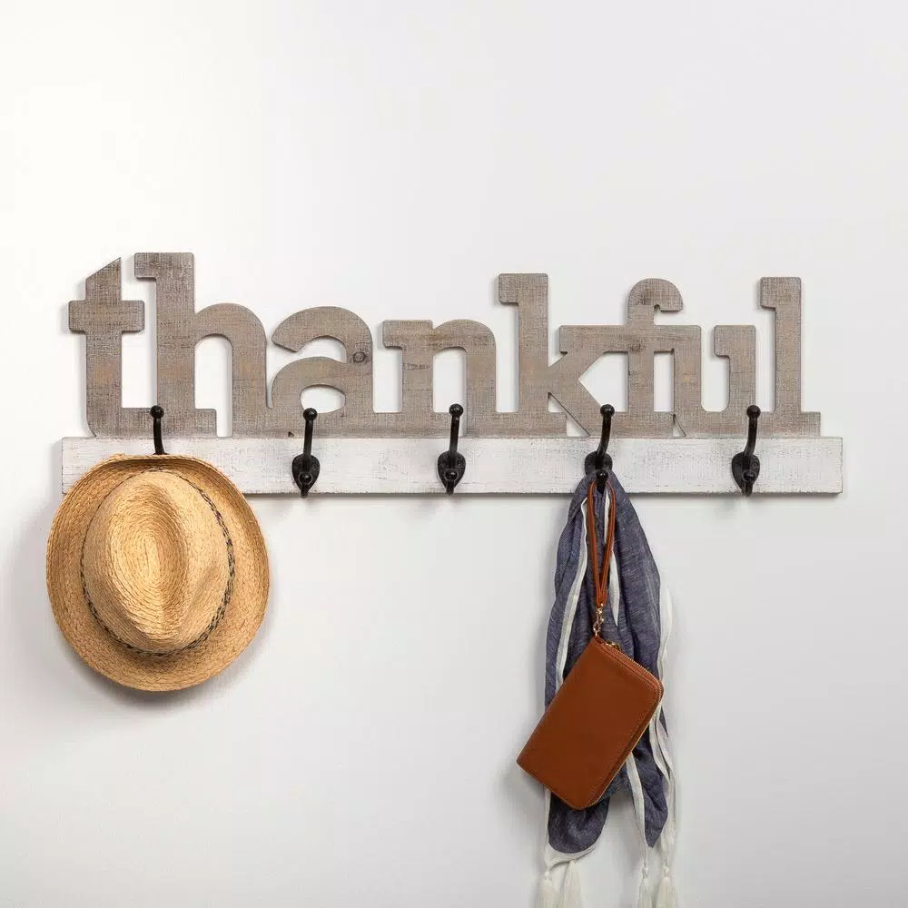 - Organize clutter and add a touch of farmhouse style to your space with this wood and metal cut out wall sign with hooks