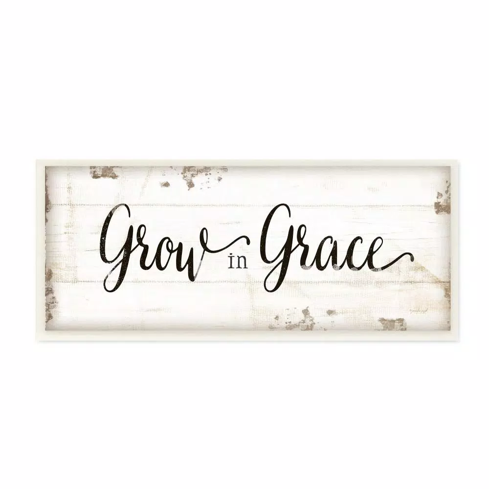 Wall Signs Stupell Industries 7 In. X 17 In. “Grow In Grace Cursive Typography” By Jennifer Pugh Printed Wood Wall Art