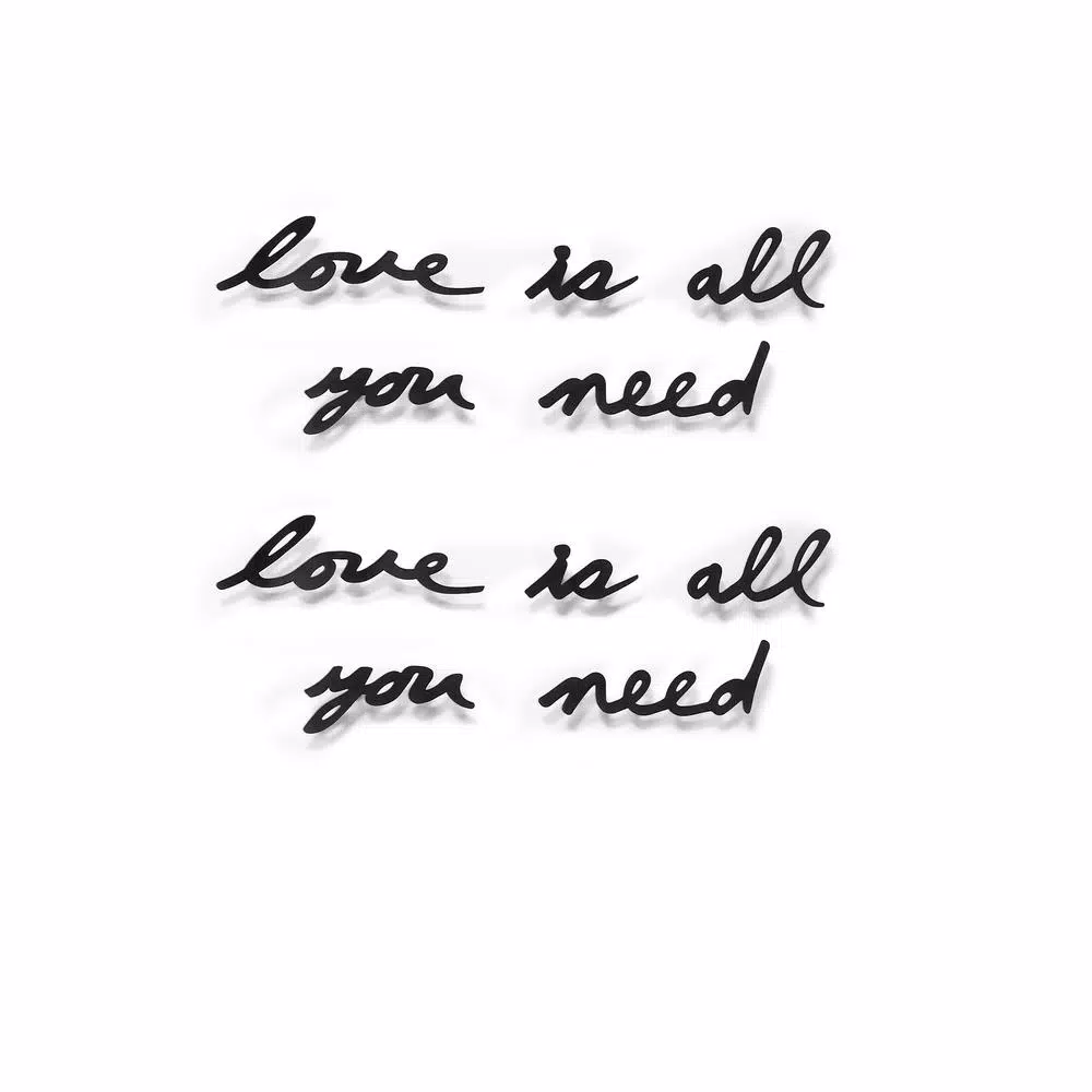 - Set of 10 stamped metal words: “love is all you need all you need is love”